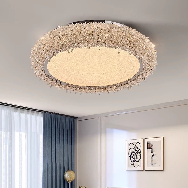 Металлический каркас (хром или золото) и массивный декор из граненого хрусталя.