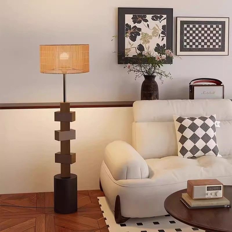 Этот современный напольный светильник отличается выразительным геометрическим дизайном. Его основание состоит из чередующихся кубических и прямоугольных модулей, создающих эффектную вертикальную композицию.